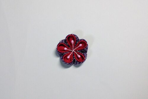 今回は2枚の布を重ねて作る(私の苦手な)二重丸つまみのご紹介。 市販されている本に書かれている方法とはちょっと違う私流です。 ■2枚の布の重ね方 本に書かれている方法 A:外側の布をずらす 外側の布を1mmずらし、つまみを作った段階で内側の布を引っ張…